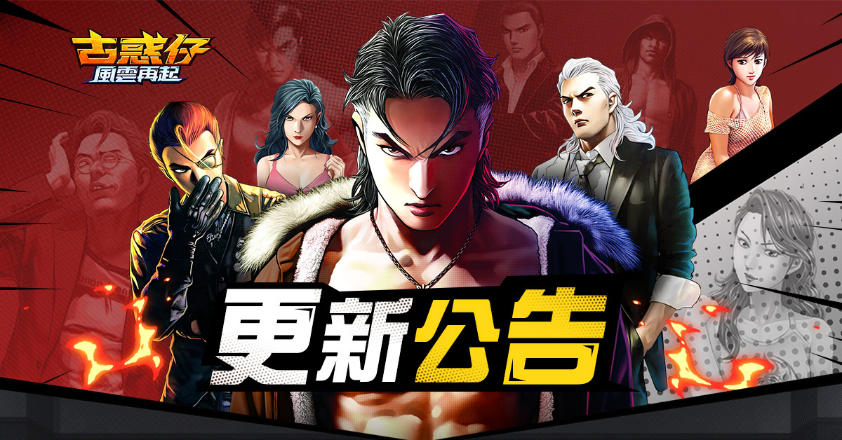 您好!感謝您一直以來對《古惑仔:風雲再起》的大力支持,為了給您提供更穩定的遊戲環境和更多的遊戲樂趣,遊戲將於2026年2月28日(週六)16:00-17:00進行停機更新維護。停機維護期間無法登錄遊戲,請大家提前退出遊戲以免遭受意外損失。伺服器開啟時間將視具體情況提前或者延後,具體的資訊請留意官網公告!感謝您對《古惑仔:風雲再起》維護工作的支持和理解,祝您遊戲愉快!